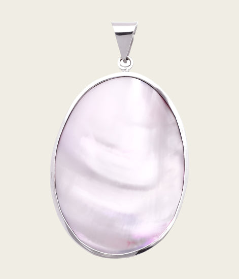 Bestel nu deze fraaie Zilveren Ovaal met parelmoer roze XL kettinghanger