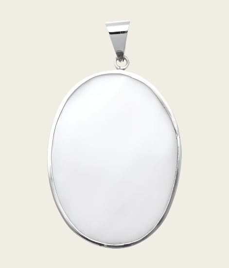 Zilveren Ovaal met parelmoer wit XL kettinghanger