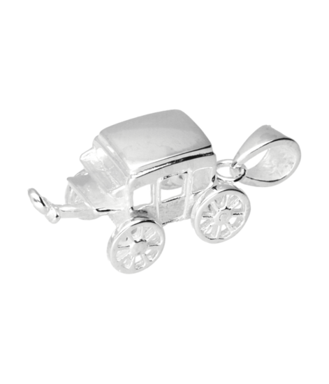 Bestel nu deze fraaie Zilveren Paardenkoets met draaiende wielen kettinghanger