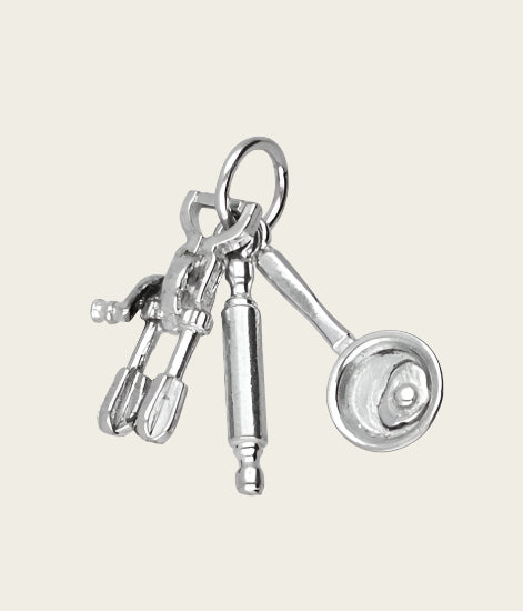 Bestel nu deze fraaie Zilveren Pan, deegroller en mixer kettinghanger