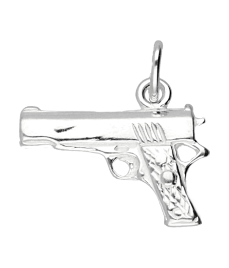 De prijs van de Zilveren Pistool ketting hanger is excl. de afgebeelde ketting. Bijpassende kettingen vindt u onder de rubriek: Zilveren kettingen voor hangers.