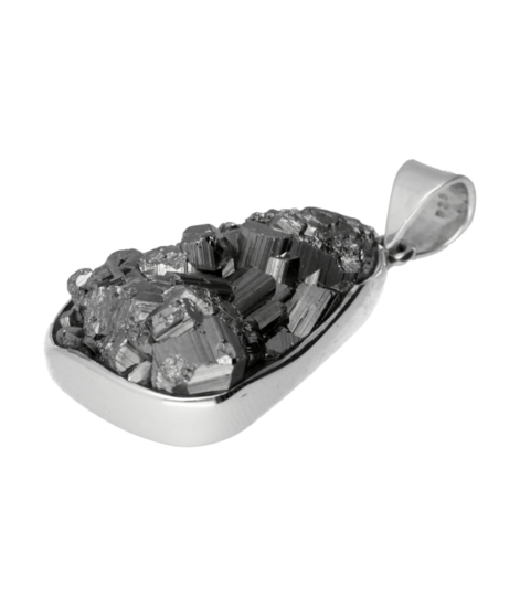 Bestel nu deze fraaie Zilveren Pyriet vrije vorm kettinghanger
