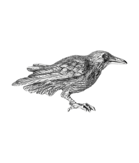 Deze fraai afgewerkte Zilveren Raaf broche kledingspeld