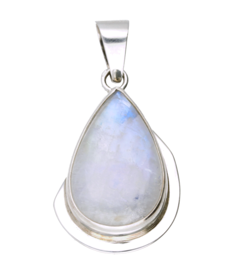 Zilveren Regenboog Maansteen edelsteen druppel met rand groot kettinghanger