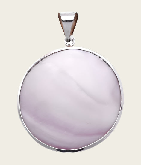 Bestel nu deze fraaie Zilveren Rond met parelmoer roze XL kettinghanger