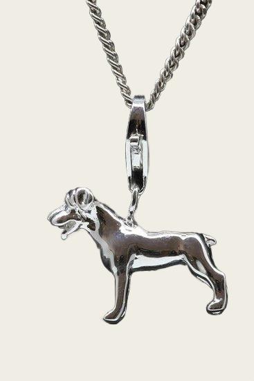 De prijs van de zilveren Rottweiler hanger én bedel is exclusief de afgebeelde ketting.