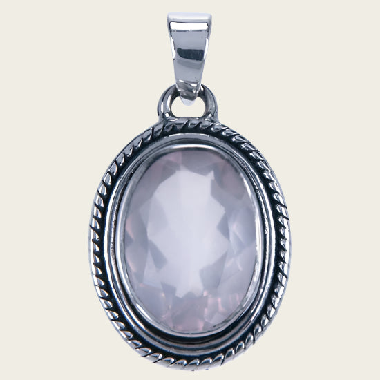Zilveren Roze kwarts edelsteen ovaal facet geslepen kettinghanger