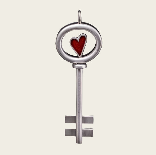 Bestel nu deze fraaie Zilveren Sleutel met rood hartje mat kettinghanger