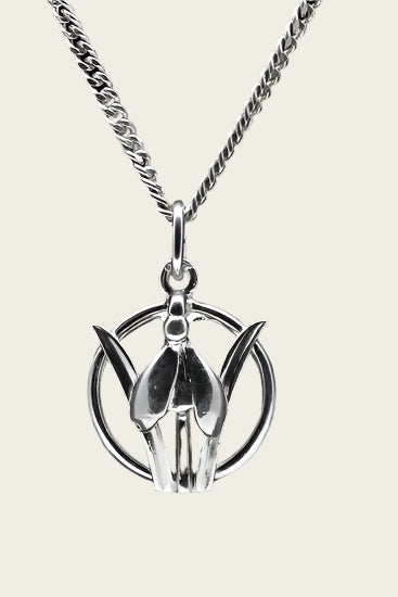 Zilveren Sneeuwklokje in cirkel ketting hanger