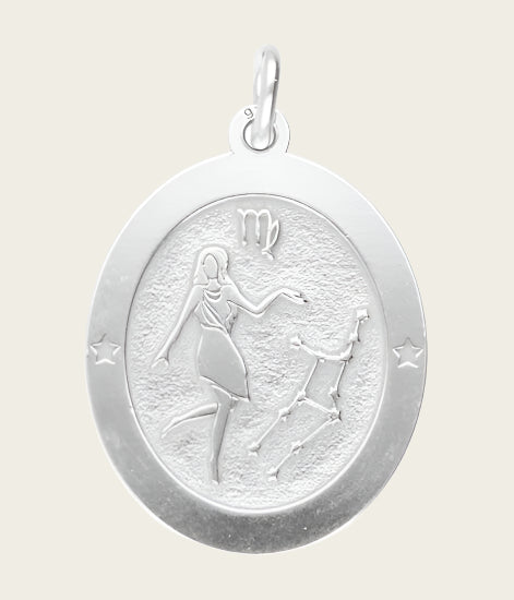 Bestel nu deze fraaie Zilveren Sterrenbeeld maagd ovaal kettinghanger