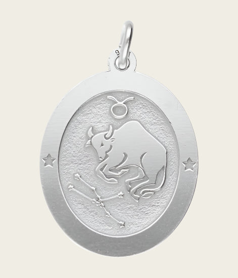 Bestel nu deze fraaie Zilveren Sterrenbeeld stier ovaal kettinghanger