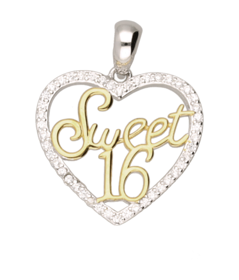 Bestel nu deze fraaie Zilveren Sweet sixteen 16 hart met zirkonia's kettinghanger