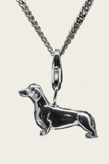 De prijs van de zilveren Teckel klein hanger én bedel is exclusief de afgebeelde ketting.