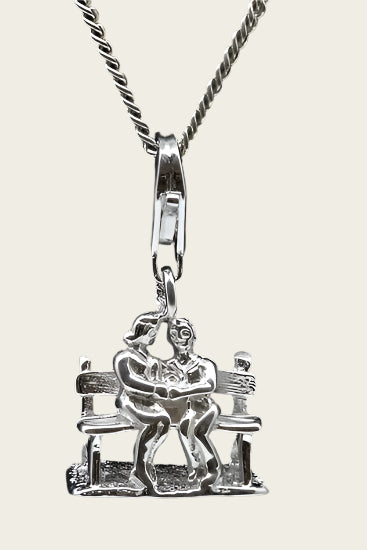 Zilveren Verliefd stel op bankje hanger en/of bedel