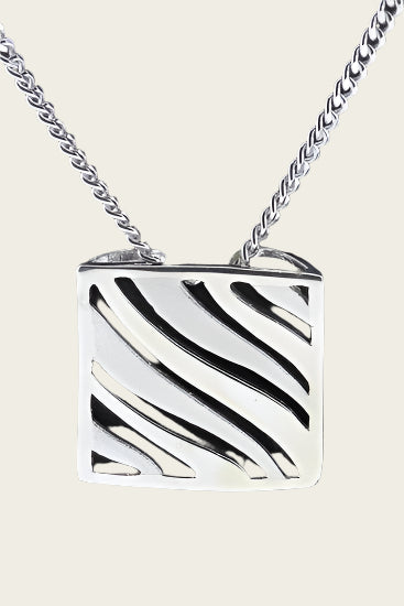 Zilveren Vierkant opengewerkt mat-glans ketting hanger