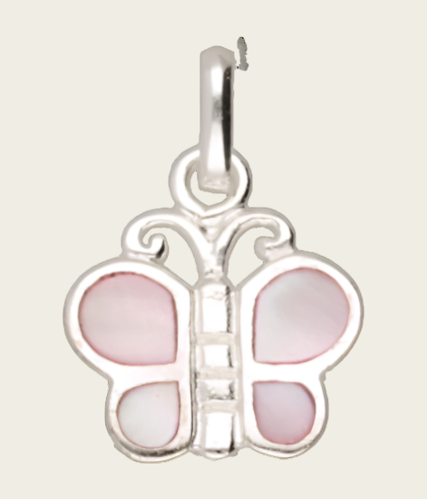 Bestel nu deze fraaie Zilveren Vlinder met roze schelp ingelegd kettinghanger