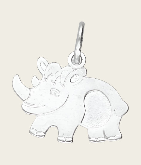 Bestel nu deze fraaie Zilveren Vrolijke Neushoorn vlak kettinghanger