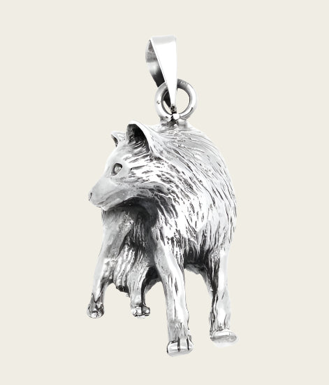 Bestel nu deze fraaie Zilveren Wolf kijkt achterom kettinghanger
