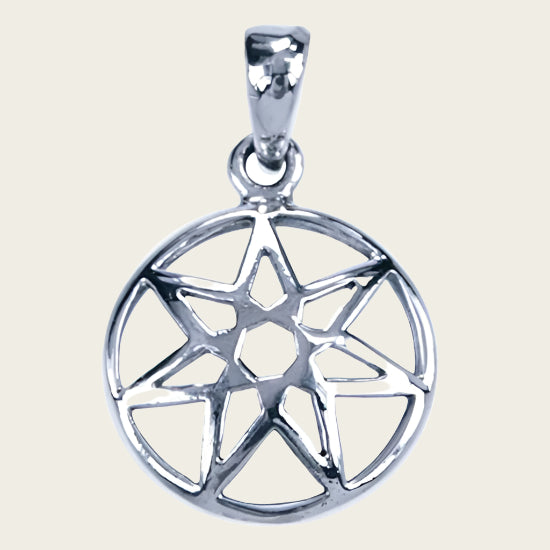 De prijs van de Zilveren Zevenster in ring ketting hanger is excl. de afgebeelde ketting. Bijpassende kettingen vindt u onder de rubriek: Zilveren kettingen voor hangers.
