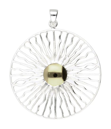 Deze fraai afgewerkte Zilveren Zon met gouden bol XL wordt geleverd in een gratis cadeau verpakking, wordt standaard gratis verzonden en past door de brievenbus. U hoeft er niet voor thuis te blijven.Bijpassende kettingen vindt u onder de rubriek: Zilveren kettingen voor hangers.