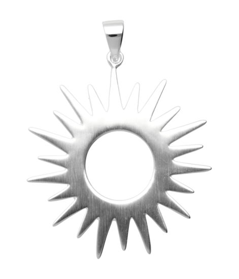 Bestel nu deze fraaie Zilveren Zon opengewerkt mat groot kettinghanger