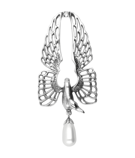 Zilveren Zwaan met opengeklapte vleugels en glasparel Art Nouveau Jugendstil XL hanger